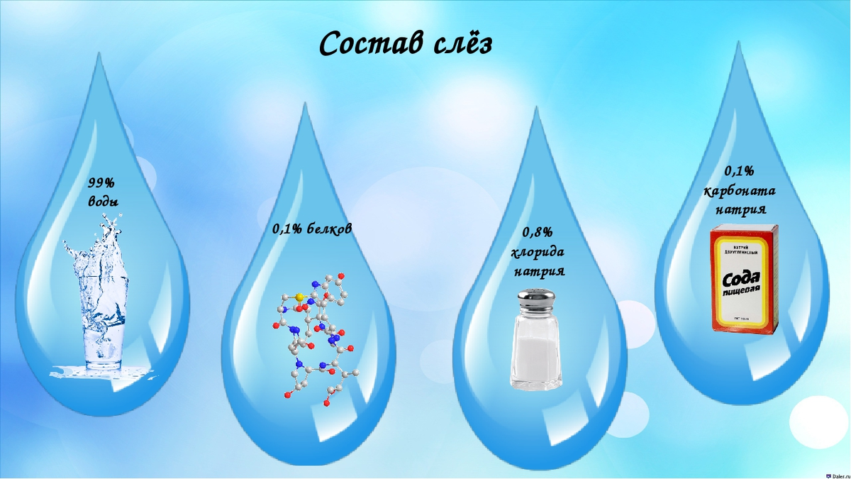 Интересный факт, что слезы зависимости от причины, по которой мы плачем. Такие эмоции как горе, чувство вины, печаль или счастье приводят к кардинальному изменению молекулярной структуры слез. Как снежинка, ни одна слеза не похожа на другую на молекулярном уровне.