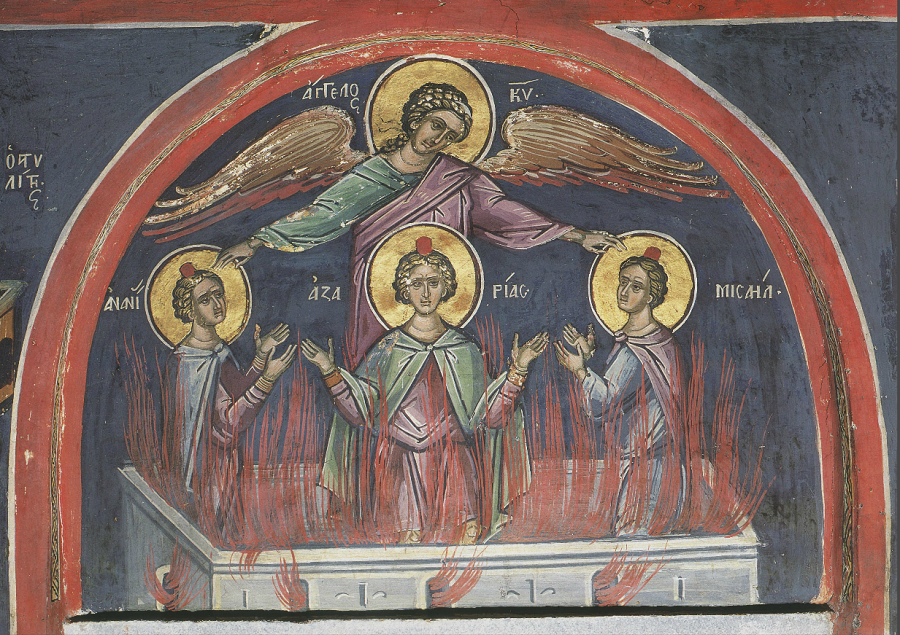 Когда в Вавилоне все народы по приказу царя Навуходоносора простерлись в прахе перед золотым истуканом, три отрока отказались последовать их примеру, потому что веровали в Бога Вседержителя, перед Которым не только Навуходоносор с его истуканом, но и вся земля – точно пылинка в беспредельном мироздании. Эта вера стала причиною чуда. Вверженные в пылавшую нестерпимым пламенем печь, они нисколько не пострадали. Пламя божественной любви сделало бездейственным чувственное пламя. Где Бог, там побеждается естества чин. Так, подобно тому чуду, и божественное пламя соединилось с душой и плотью Богоматери, чтобы озарить ее всю изнутри.