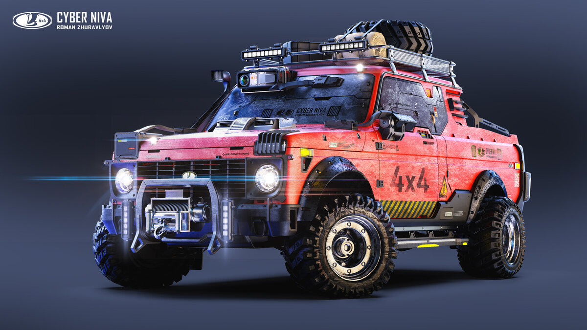Он стилизовал "Ниву" с кузовом пикап (вы знаете её под индексом ВАЗ-2329) в автомобиль из вселенной игры Cyberpunk 2077.
