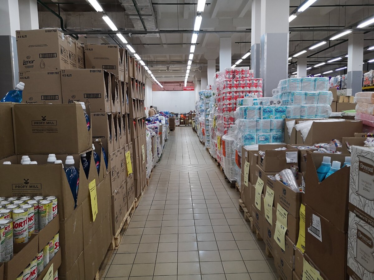 При первом взгляде магазин "Маяк" немного похож на "Светофор"-те же ряды с коробками, палетами, полками, но оказались существенные различия.