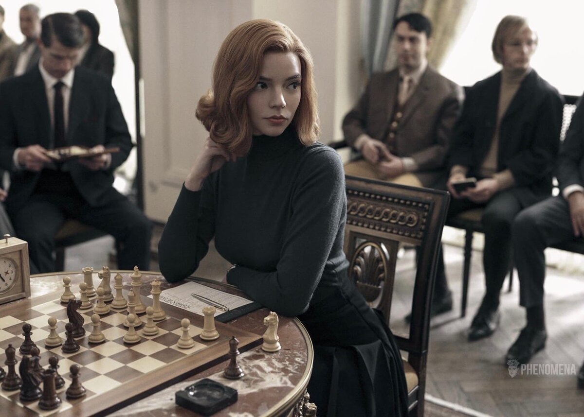 Штат Кентукки, 1957 год. После смерти матери 9-летняя Элизабет Хармон остаётся сиротой и отправляется в католический приют. В этом заведении детям регулярно дают «витамины», и по совету другой подопечной Бет оставляет зелёные капсулы на ночь. Там же девочка знакомится с пожилым уборщиком Шайбелем, которого просит научить её играть в шахматы. Днём, сбежав со скучных занятий под предлогом помыть тряпку, Бет играет с мистером Шайбелем в его подвальной подсобке, а ночью, приняв зелёную капсулу, прокручивает шахматные партии на потолке общей спальни. Через несколько лет девочку удочерят, у неё начнётся совсем другая жизнь, но главную роль в ней будет играть любовь к шахматам.