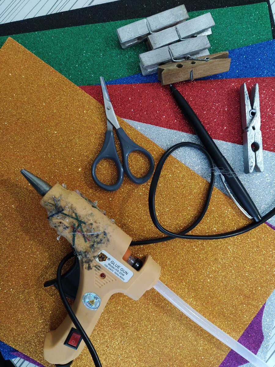 Для создания декоративных элементов, нужны обычные хозяйственные прищепки. Мы их окрасили серебристой краской из баллончика, но вполне допустимо оставить их в древесном цвете. Все фигурки легко рисуются и вырезаются детьми. Рисовать нужно с обратной стороны, несильно нажимая ручкой. Так как материал мягкий, дошкольники режут его без проблем.