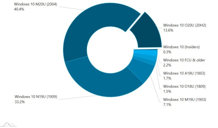 Доля Windows 10 (2004) превысила 40 % от общего числа компьютеров с десяткой