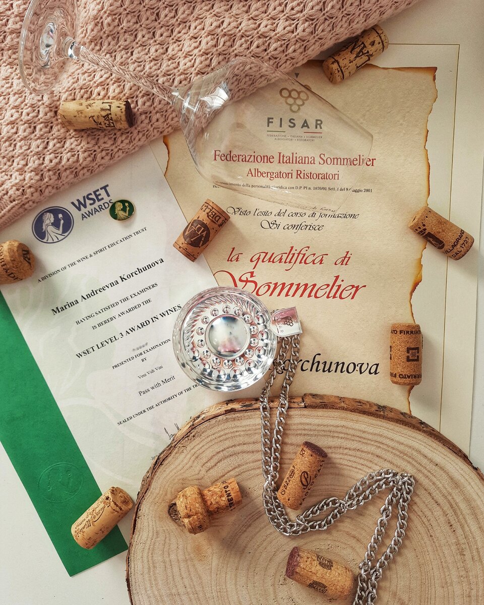 В прошлом году за несколько дней до начала карантина, я успела сдать последний сложнейший экзамен, включающий письменный тест знаний, охватывающий все аспекты 3 уровней, практическую часть подачи вина и дегустации, а также устный опрос комиссии квалифицированных сомелье. Только осенью, в связи с ограничениями наложенными пандемией, мы наконец смогли повидаться с коллегами-сомелье и преподавателями моей ассоциации FISAR на торжественную церемонию вручения аттестатов,чтобы отпраздновать присвоение этого важного титула в сказочной атмосфере замка San Marco.