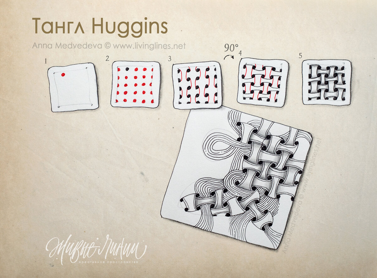 Нарисуйте плиточку с использованием Crazy Huggins, добавьте немного сумасшествия в свой Зентангл.