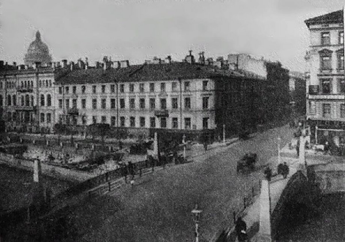 Фотография доходного дома Меншикова на углу Гороховой улицы и реки Мойки.