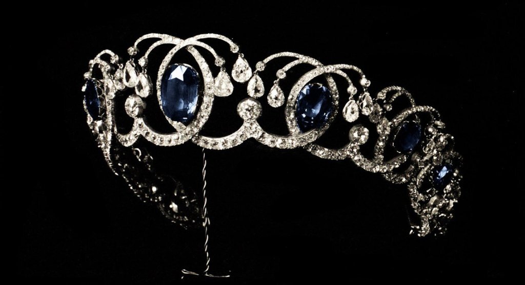 Четыре «пропавших» их официального каталога украшения – это ожерелье с изумрудами и бриллиантами, браслет из сапфиров и бриллиантов, брошь-бантик из сапфиров и, самое главное – очень красивая тиара с сапфирами, которую сразу же назвали «Волна».