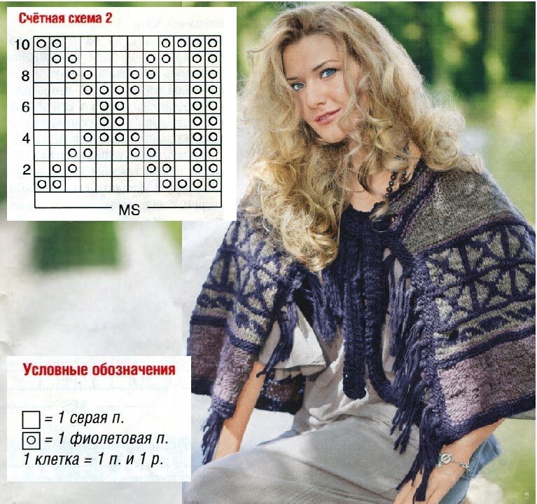 Жаккардовый узор в пончо 36/38 (42) 46/48 размеров.