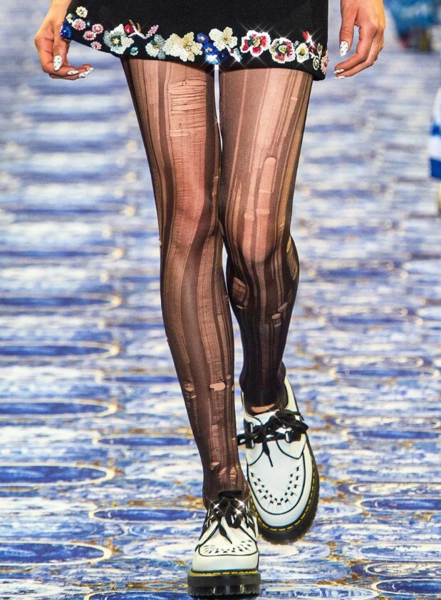 Нельзя сказать, что Gucci «изобрела велосипед», предложив нечто невообразимое. В 2008 году Александр Ван, удостоенный «Оскара моды», уже демонстрировал в рамках коллекции трикотажных костюмов чулки со стрелами. А в 2015 несколько моделей в живописно разодранных колготах вывели на подиум дизайнеры Yves Saint Laurent. Возникает ощущение, что формируется тренд на панковские образы и откровенно трэшевые вещи.