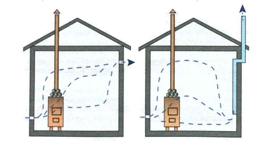 Баня, особенно если вы хотите сделать ее комфортной и полезной, должна иметь соответствие температурно-влажному режиму в парной. Влажность должна быть в пределах 30-65%, иначе она принесет больше вреда чем пользы. Также, если у вас баня построена не из дерева, то в ней необходима вентиляция. В деревянных банях стены “дышат” и необходимость в вентиляции минимальна. Если нет вентиляции, то нагрев бани будет неравномерным. У печи будет жарко, а на уровне пола и стен прохладнее. Есть различные способы обеспечения циркуляции воздуха, в основном все зависит от мощности печи и площади помещения. Причем, чем ниже располагается отводное отверстие, тем больше сохраняется тепла в бане и соответственно уменьшается расход топлива. Верхний отвод применяется лишь кратковременно, если станет очень горячо. Обязательное условие состоит в том, чтобы холодный воздух с улицы, попадая внутрь, проходил рядом с каменкой, либо через печь. Входное отверстие для холодного воздуха размещается чуть выше каменки, а