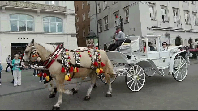 Кабриолет с лошадьми величественно и красиво ступают по площади Кракова. Хотим поделиться в вами 18 век в наши дни!