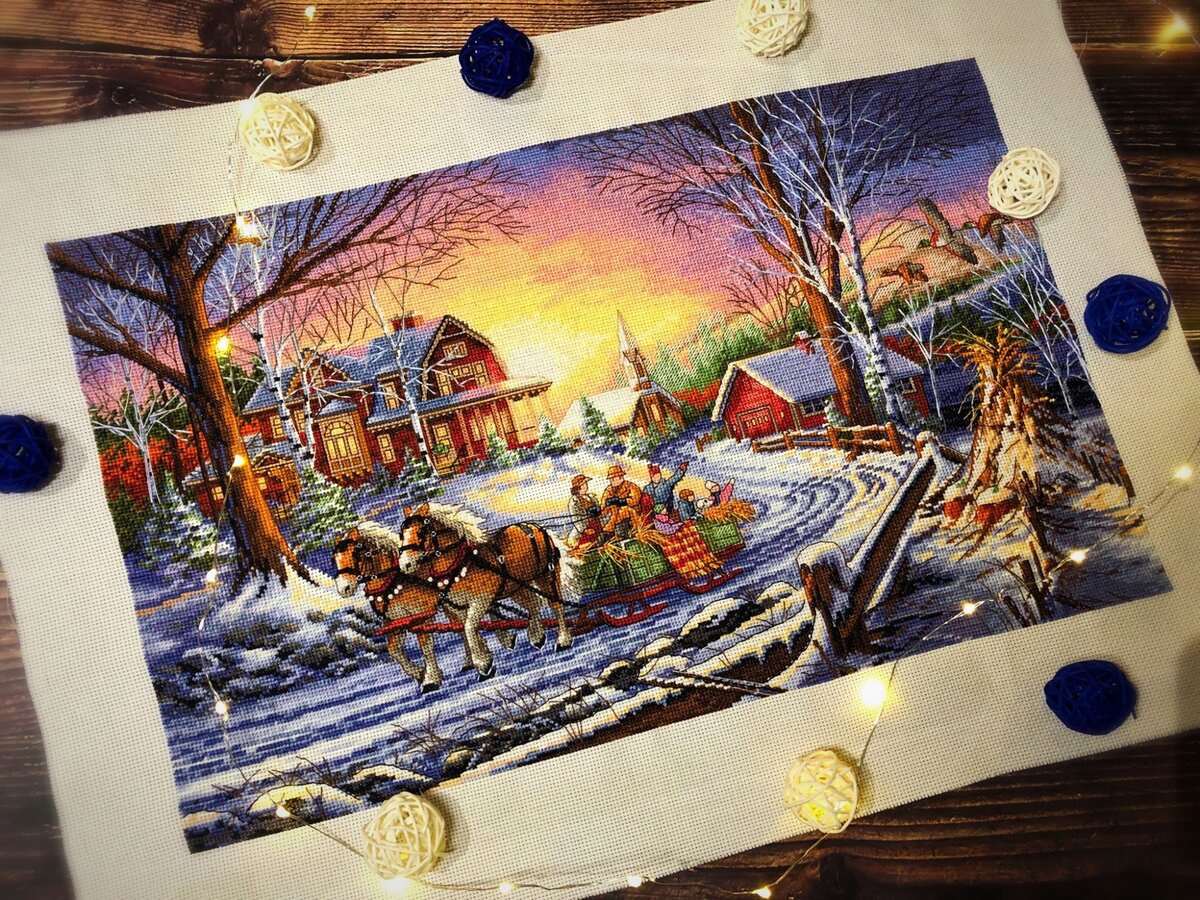 Решила, что каждую зиму буду вышивать по набору от Дименшенс. Именно вот по такому большому дизайну. Когда вышита картина от Дима, то это непередаваемые эмоции. Моя работа "Домой на праздники" практически завершена. Скоро будет статья!))