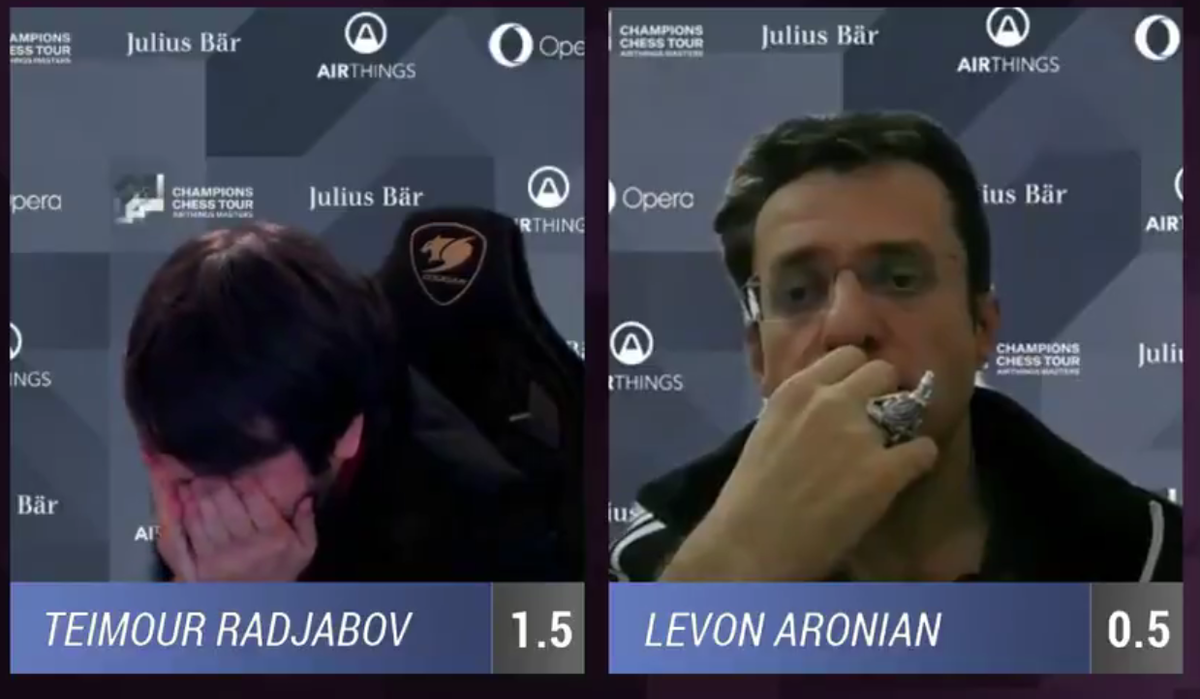 Вчера завершился второй по счету турнир серии Chess Champions Tour. В финале Aithings Masters Теймур Раджабов играл против Левона Ароняна. Первый матч завершился победой азербайджанского гроссмейстера со счетом 2.5 - 1.5, поэтому Ароняну необходимо было отыгрываться в заключительном игровом дне.