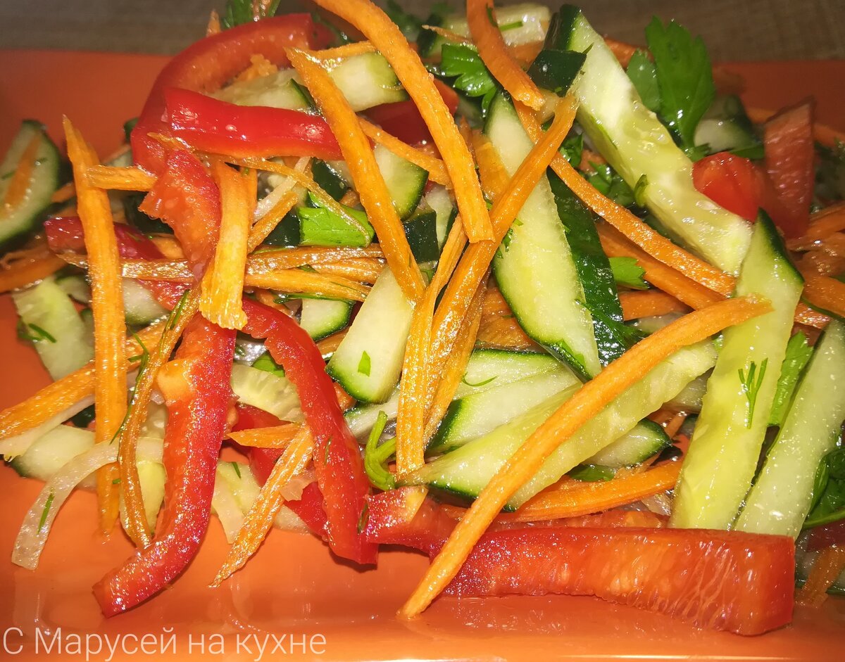 Лёгкий овощной салат, который готовится быстро и легко. Всего 15 минут и салат уже на столе. Он подходит для детей от 2-х лет, для сторонников правильного питания