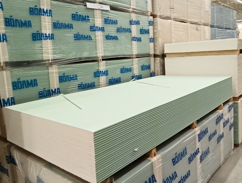 - влагостойкий (ГКЛВ) - листы зеленого цвета;