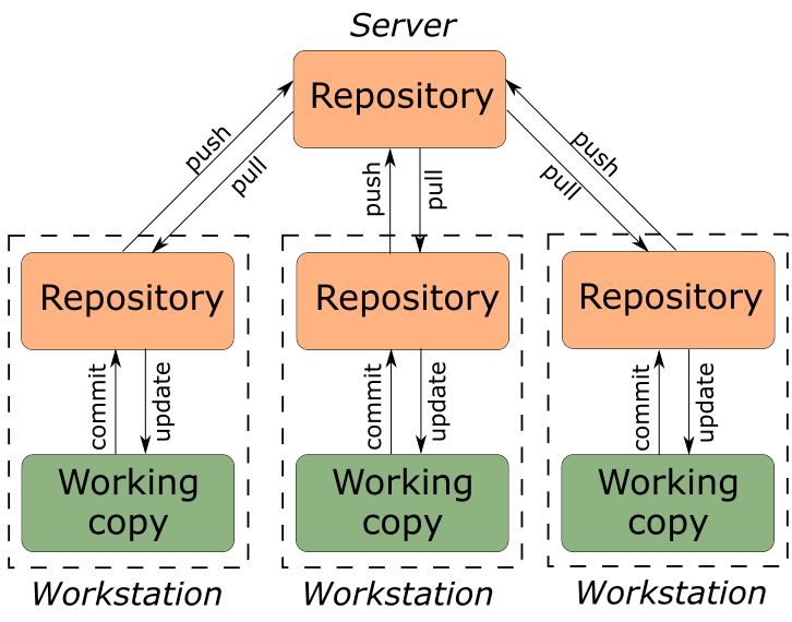 - Распределенная модель системы контроля версий