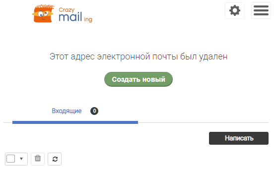 Остальное стандартно. Время существования почтового ящика — 1 час. Сайт частично переведен на русский язык.