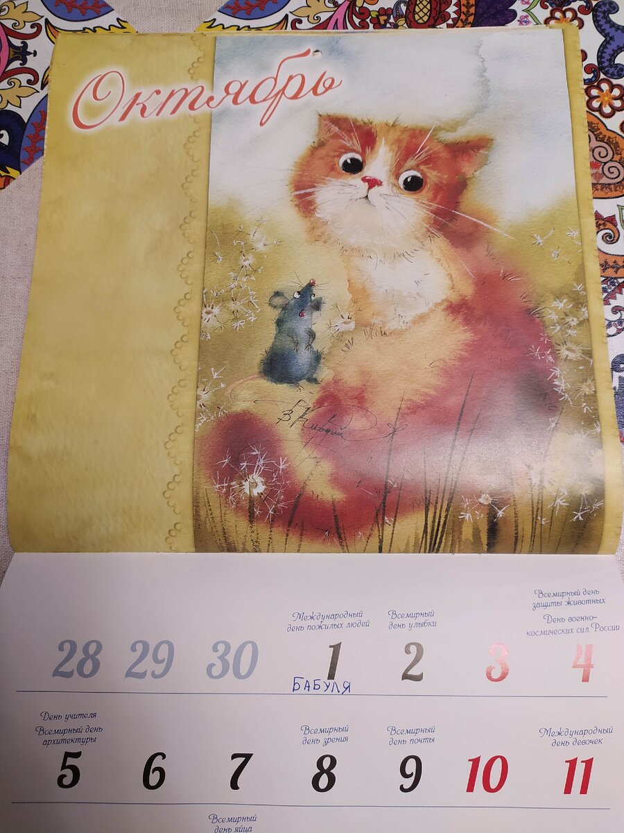 Сегодня последний день года, пришло время замены календаря. Я решила пересмотреть ещё раз все картинки, и ахнула. На весёлых, детских картинках, очень часто изображён рыжий кот. И именно в этом году впервые в жизни у нас в этом году появился рыжий котёнок!!! Совпадение? Не думаю.
