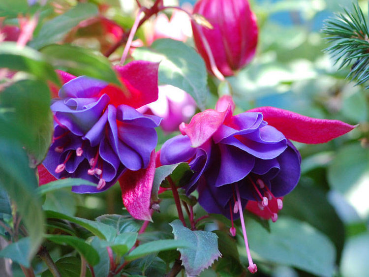 Кустовая сильнорослая (высота до 50 см) фуксия с обильным цветением.