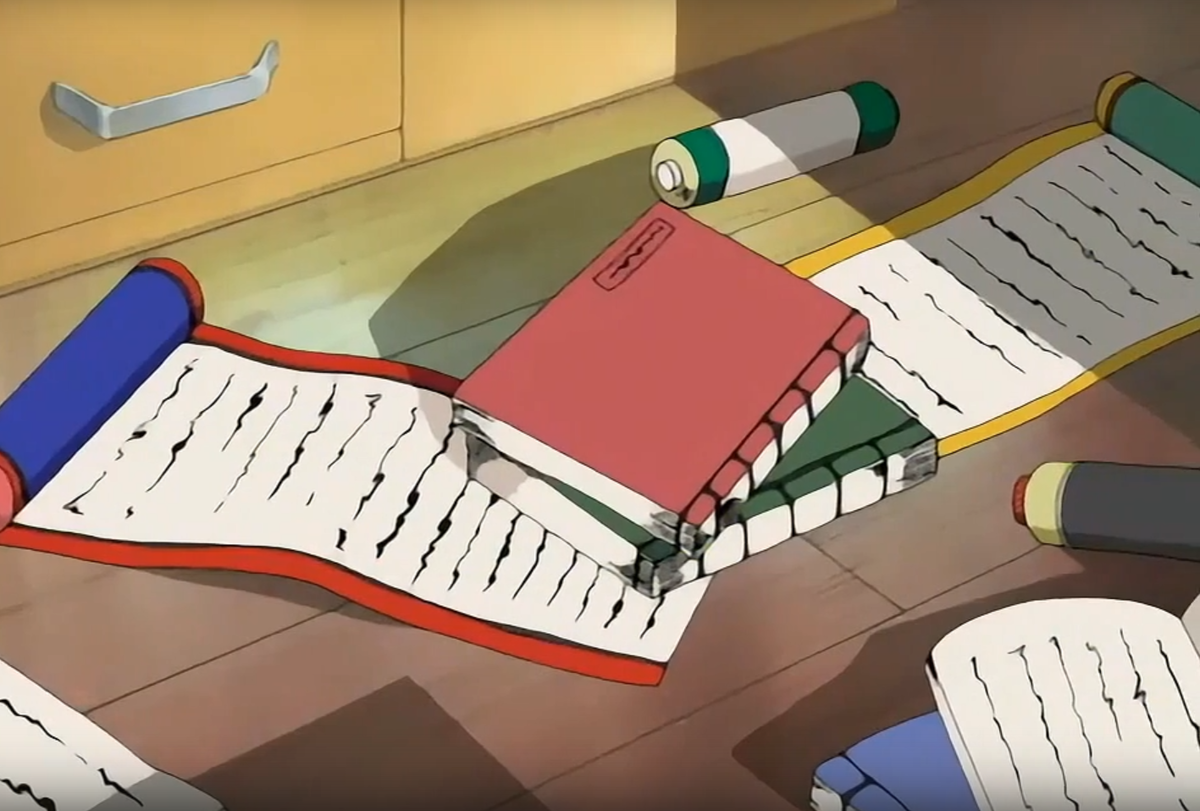 Вот и эти свитки на полу говорят нам, что Наруто двигался идеей "стать лучше\сильнее\умнее", но походу он раскрыл сперва один материал, отвлёкся, обо всём забыл, прочёл более интересный заголовок на другой книге, опять не смог ничего понять, решил попробовать другую и так по цепочке. В итоге - хаос на полу из кучи чтива, а насчёт полученных знаний - можно только предполагать. Либо эффективность была минимальна, либо никакая вовсе.
