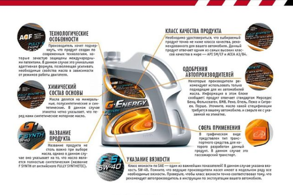 Некоторые производители рекомендуют использовать только подходящие для их автомобилей масла. Информация в этом блоке сообщает: продукт отвечает стандартам Мерседес Бенц, Фольксваген, БМВ, Рено, Опель, Пежо и Ситроен, Порше. Уточните, масло какой спецификации требуется вашему автомобилю и сверьте ее с указанной на этикетке.