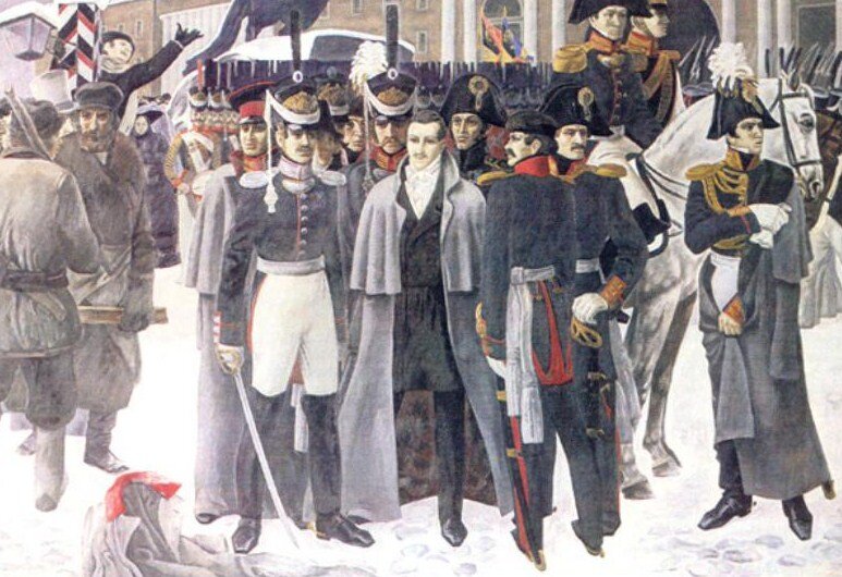 Для примера стоит взять одно историческое событие а точнее восстание Декабристов на Сенатской площади в Петербурге 26 декабря 1825 года. Тогда группа из 30 офицеров заговорщиков организовала мятеж с целью упразднения самодержавия и крепостного права, воспользовавшись процедурой передачи власти от Константина к Николаю. Задолго до начала инициации процедуры велась работа по агитации солдат,стоит отметить:солдаты не особо понимали на что идут и на что их подписали.