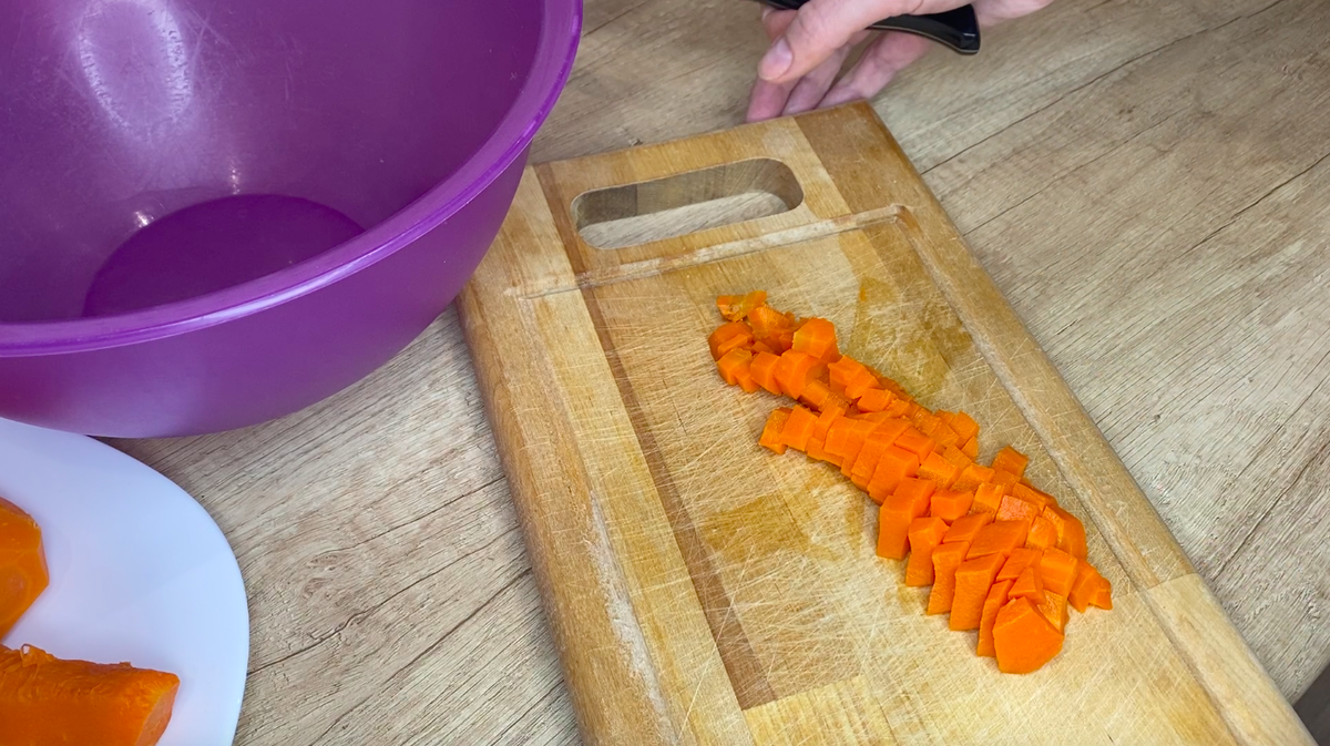Итак, очищаем овощи от шкурки и нарезаем на кубики.