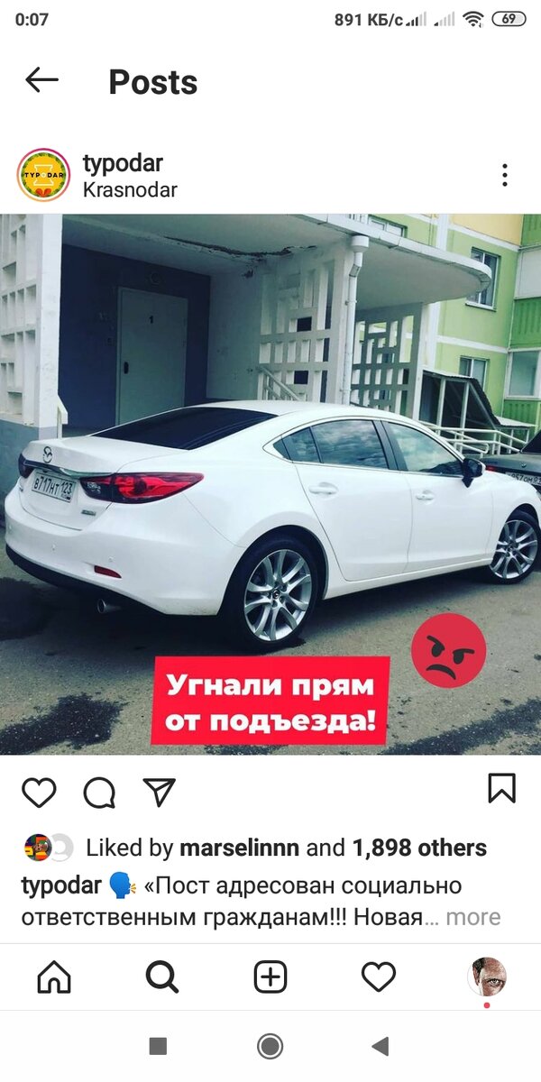 У нас угнали автомобиль. Новая Тойота Камри. Обратились в полицию. Дорожная инспекция смогла отследить передвижение угнанной машины до станицы Старокорсунской Краснодарского края (автомобиль угнан в Краснодаре), дальше следы похищенного имущества теряются.