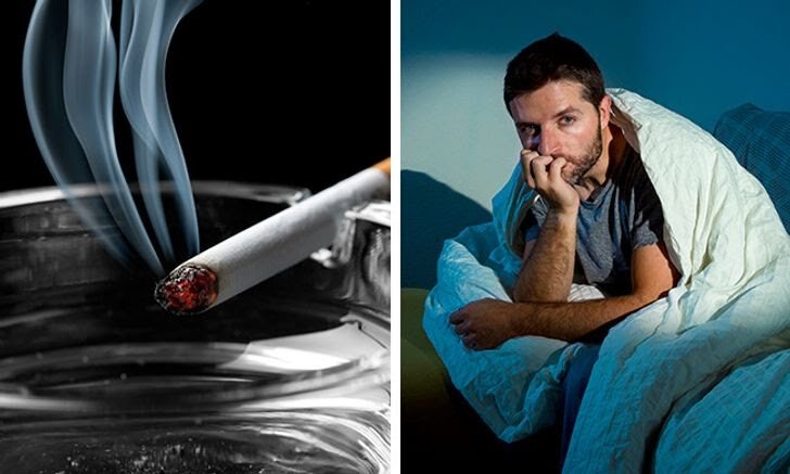 Как и кофеин, никотин оказывает стимулирующее действие на организм. Он вызывает учащение сердечного ритма, повышает артериальное давление и стимулирует работу мозга. Все эти процессы не способствуют засыпанию. И даже если вы уснете, сон будет хуже, чем мог бы быть, если бы вы не курили. В целом среди курильщиков больше людей, страдающих бессонницей. Даже если вы не планируете отказываться от этой привычки, хотя бы не курите за 1,5–2 часа до сна. Это сделает сон более крепким и здоровым.