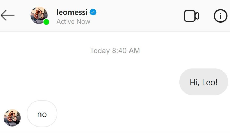 Дело в том, что летом у Месси заканчивается контракт с Барселоной. И уже сейчас Лео может вести переговоры с другими клубами. Спартак написал в #твиттер именитому футболисту, но Лео сразу же отказался переходить в московский клуб, лаконично ответив "no".
