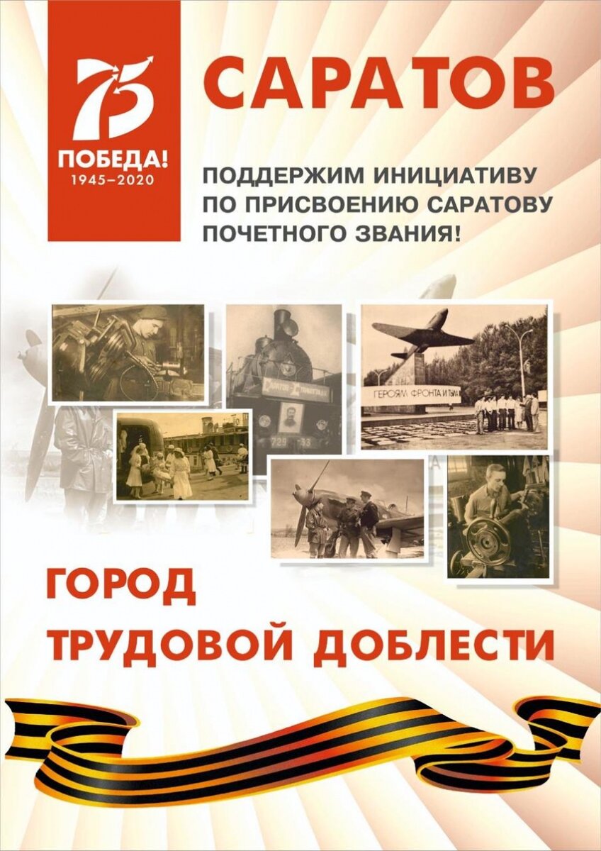 Саратов вошел в число 20 городов, получивших звание Города трудовой доблести, увековечив тем самым подвиг тружеников тыла Великой Отечественной войны. До конца 1942 года в Саратовскую область эвакуировали более ста предприятий, таким образом, количество заводов союзного назначения выросло вдвое. На предприятиях в первые месяцы войны трудились только студенты, женщины, пенсионеры и подростки, так как взрослые мужчины сразу же отправились на фронт. Работники предприятий были уверены, что трудиться они должны не только за себя, но и за ушедшего воевать друга, соседа, земляка. Так родился девиз: «Одну норму за себя, вторую – за товарища, ушедшего на фронт».