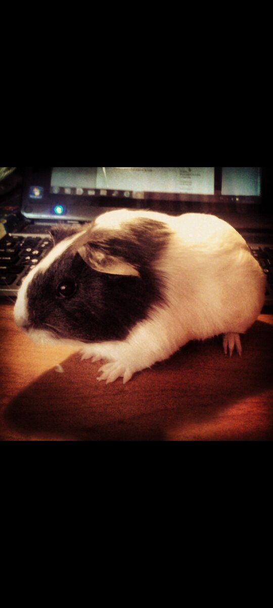 Мы взяли её в 2012 году в зоомагазине. И то взяли совершенное случайно именно ее, так как изначально я хотела другую, но по иронии судьбы именно черно-белая свинка стала моей:)