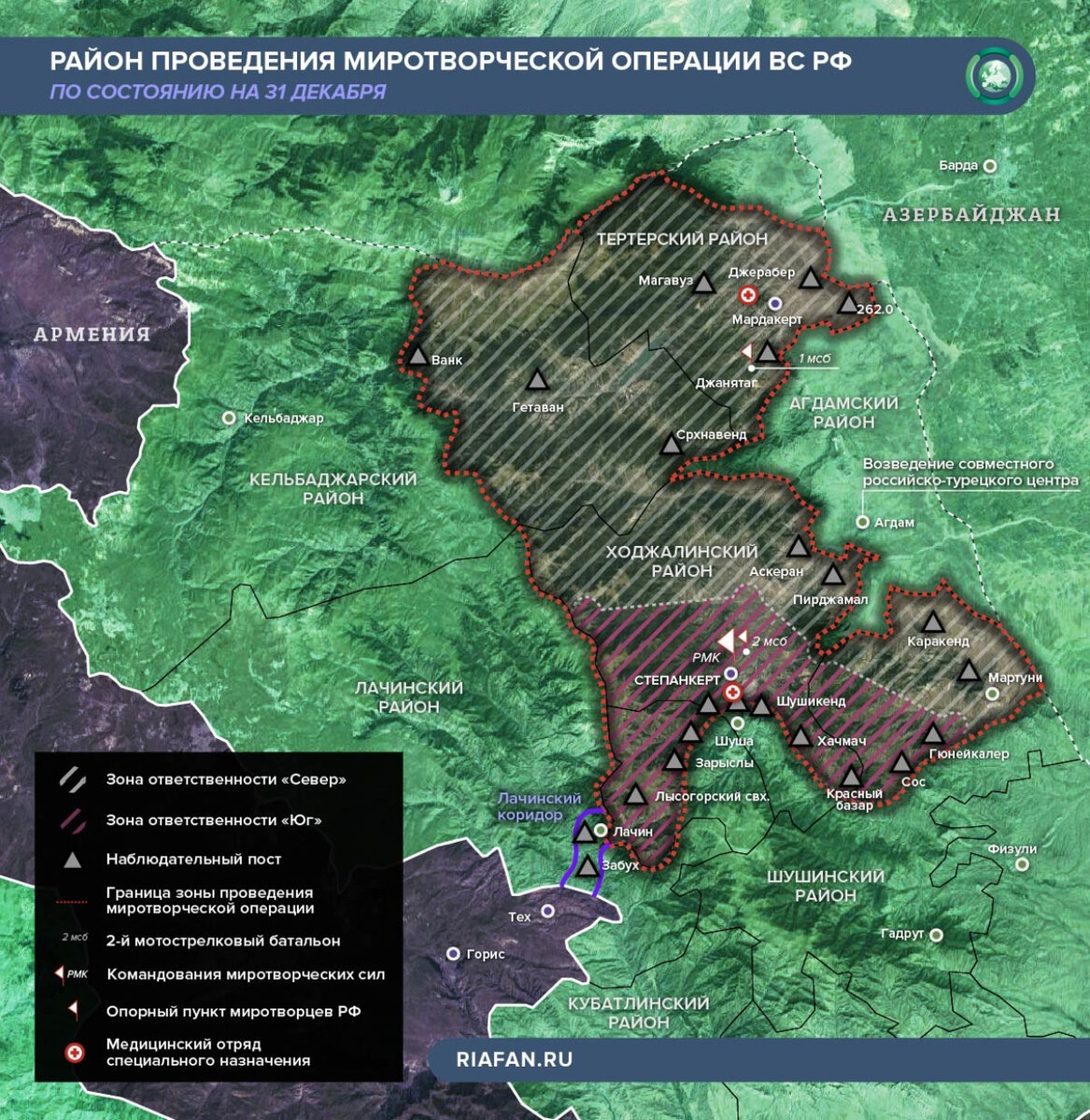 Но это будет означать прямой конфликт с Азербайджаном, поддерживаемым Турцией. Причём, в ходе этого конфликта, азербайджанцам даже не надо будет никого атаковать. Они, СО СВОЕЙ ТЕРРИТОРИИ, могут огнём артиллерии парализовать "дорогу жизни" через Лачинский коридор - отрезав таким образом Нагорный Карабах от внешнего мира. И просто расстреляют из пушек Степанакерт - над которым нависает занятая азербайджанцами Шуша. Ведь Нагорный Карабах - это самый настоящий стратегический мешок.