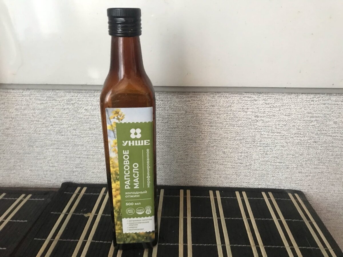 В наши руки попал предпродажный образец бутылки рапсового масла холодного отжима. Отличительной ее особенностью является то, что масло разливается не в пластиковые, как в случае с подсолнечным маслом, а в стеклянные бутылки. В глаза сразу бросается его ярко-желтый цвет, который более свойственен для высококачественного оливкового масла. Стоит отметить, что вкус у рапсового масла довольно специфичный, но неприятным назвать его нельзя. При жарке масло действительно не дымит, а значит в блюдах, приготовленных на нем, нет продуктов горения, характерных для оливкового и подсолнечного масел. В рамках дегустации мы приготовили на рапсовом масле булгур, получилось даже лучше, чем на сливочном.