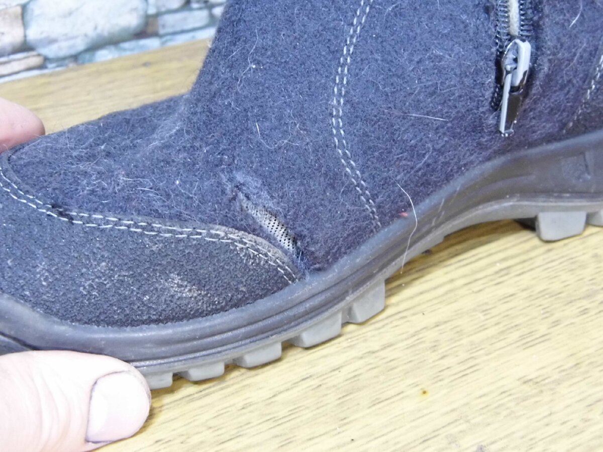 Ремонтировать их имеет смысл, ибо лёгкие, тёплые, удобные. Мысок обрезиненный. Ещё один фактор - цена новых.