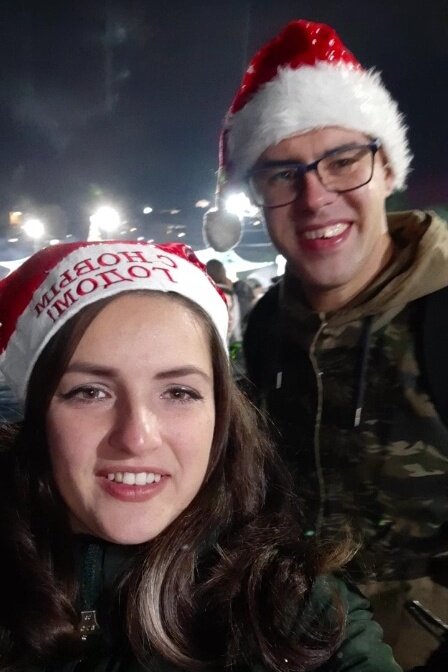 Мы хотели встретить на набережной послушать бой курантов с телефона, выпить шампанское и поехать домой. В 23:45 мы подходили к началу набережной где стоит елка и увидели, что весь народ стоит у края, где пришвартовываются лодки и катера, мы тоже заняли местечко.