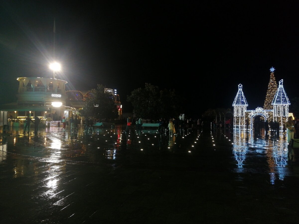 Ялта очень красиво украшена! Люди гуляли, радовались. Играли на улице местные музыканты. Им подпевали и даже танцевали прям на набережной во всю! было весело и классно!