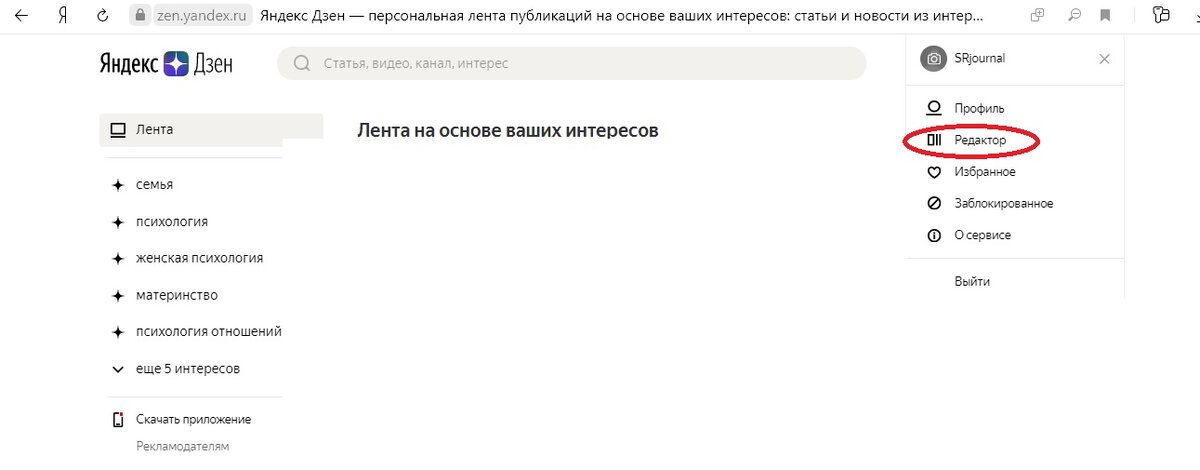 Заходим на яндекс дзен, видим