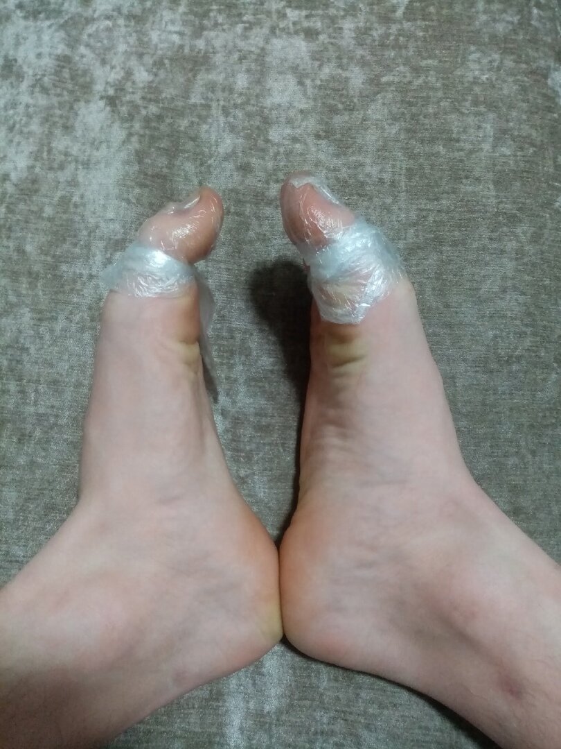 Придя домой я обнаружил, что на больших пальцах обоих ног, красуются два больших жёлтых образования, на ощупь они были очень замершими и никакой боли не приносили.