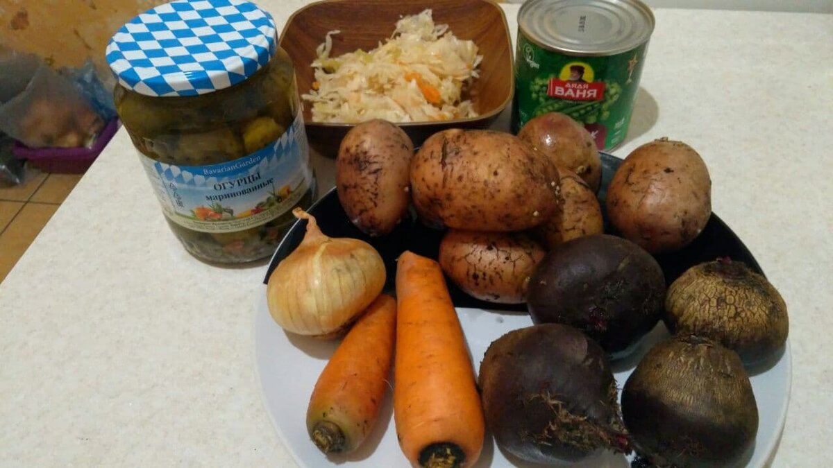 2. Картошку, морковь и свеклу отварить (≈ 60 минут), остудить, почистить.