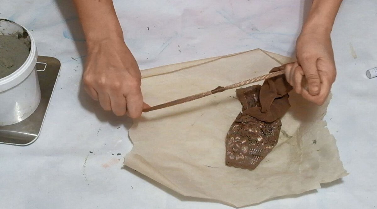 В 1 кг клея для кафе добавляю 200 мл воды (можно использовать цемент или гипс). Раствор должен быть достаточно густым, чтобы не просачиваться через капрон. Капрон лучше брать не менее 40 ДЕН.