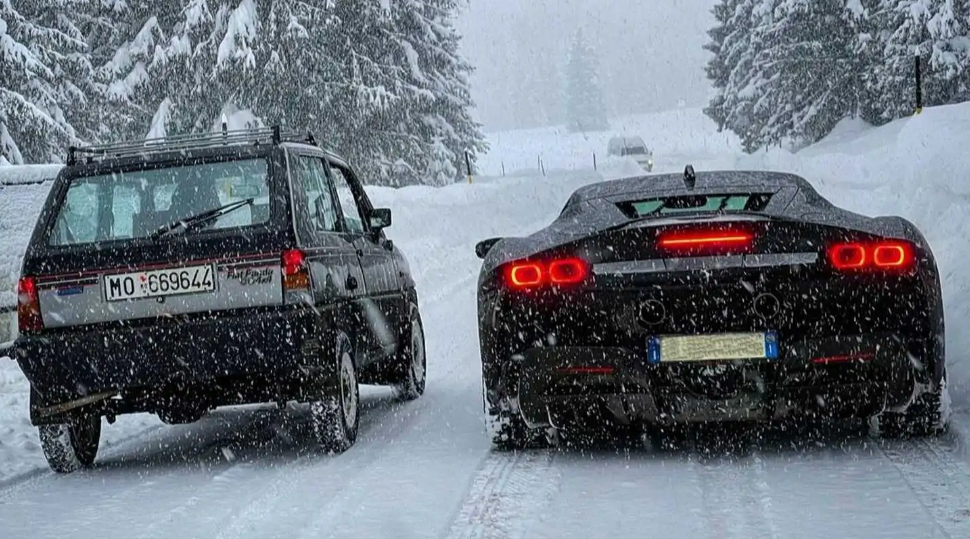 48 лошадиных сил против 986 лошадиных сил на заснеженной дороге.