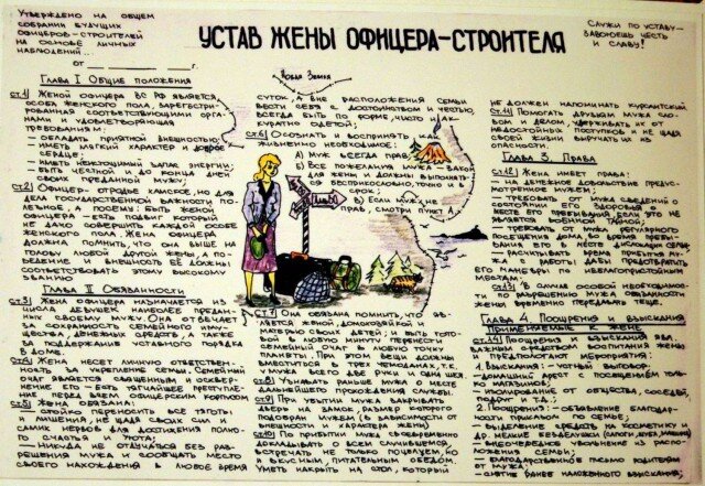 31. Каждая девушка, стоящая на пороге почетного звания – жена офицера – должна ознакомиться с требованиями настоящего устава. 32. В случае несогласия хотя бы с одним пунктом настоящего устава, девушка не достойна претендовать на почетное звание – жена офицера и подлежит немедленной замене.