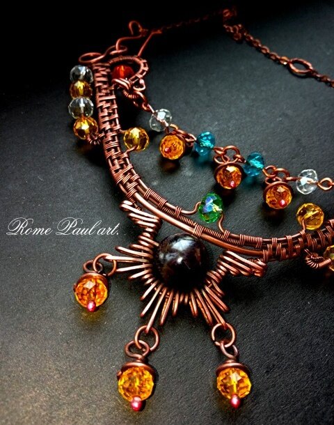 Колье медное ХРУСТАЛЬНАЯ РАПСОДИЯ с аметистом и хрусталём