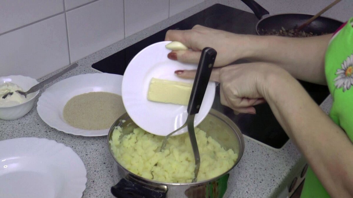 1. Картофель нарезать кубиками, положить в кастрюлю с подсоленной водой и отварить до готовности. Затем слить воду, посолить и истолочь картофель в пюре с добавлением молока и сливочного масла.