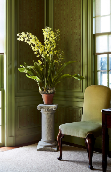 Давайте начнем с демонстрации : с зелеными цветами, вырывающимися из гигантских стеблей, которые могут достигать трех футов в высоту, эта дива ( Grammatophyllum scriptum var. Citrinum ) требует внимания - и здесь надолго. Это долгожитель. Пройдет два месяца, и ни один лепесток не упадет. Мой совет: поместите его на яркий свет и постоянно держите питательную среду (кору орхидеи) полностью влажной.