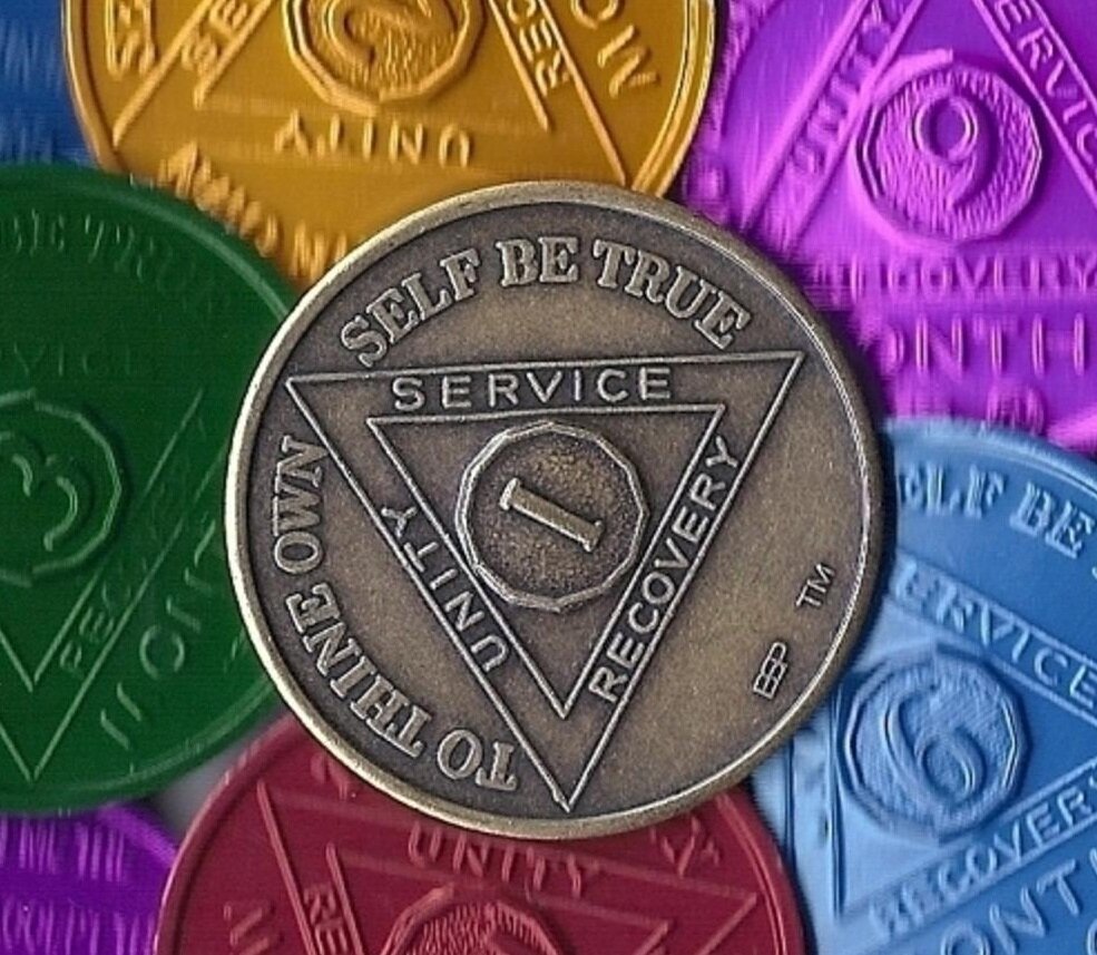 Чтобы показать, как долго человек находится в состоянии трезвости, большинство групп АА используют фишку определенного цвета или сплава, обозначающий диапазон времени, в течение которого этот человек был трезвым. Обычно монеты трезвости выдаются через один месяц, три месяца, шесть месяцев, девять месяцев трезвости, в первую годовщину. После этого монеты выдаются после каждой годовой вехи. Существуют даже такие удивительные монеты, как 36я годовщина, которая была вручена 59летнему члену общества в Метуэне, штат Массачусетс.