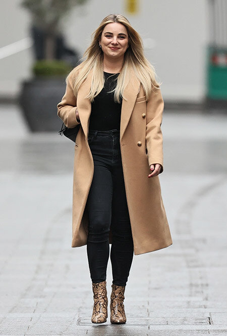 После Нового года мы уже традиционно думаем о следующем модном сезоне. И нередко присматриваем верхнюю одежду для весны уже сейчас, когда в магазины поступают новые коллекции. Телеведущая Сиан Велби предлагает обратить внимание на классику – бежевое пальто, которое никогда не выходит из моды. Лаконичную модель она решила дополнить черным лонгсливом, джинсами в тон и акцентными ботильонами с
