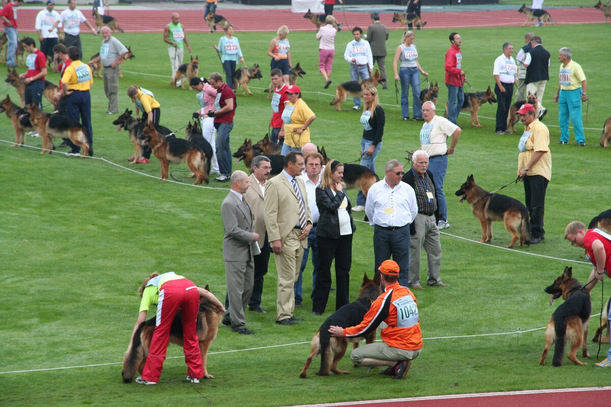 Одна из особенностей выставок немецких овчарок – то, что их проводят на большом стриженном газоне. Самую престижную выставку, BSZC (Зигер), проводят в Германии на футбольном поле стадиона бундеслиги. После описания в первый день и предварительной расстановки судья в завершающий день выставки отобранную группу лучших собак достаточно долго гоняет по рингу – шагом, а затем и рысью. При движении собак в ринге эксперт находится не вплотную к собакам, а на удалении, чтобы одновременно сравнивать несколько собак между собой.