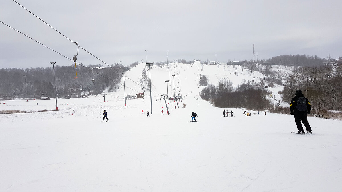 Обычно самые комфортные и нестрашные горки тут же объявляются учебными, и туда без инструктора не пускают. Но надо же родителям где-то заниматься с ребенком. Самым подходящим в этом плане можно назвать Центр Леонида Тягачево в д. Шуколово. Склон №6: длина 364 м, перепад высот всего 42,50 м., здесь катаются даже дети в одиночку. Оператор подъемника помогает им зацепиться за бугель, а дальше они сами скатываются. Надо отметить, что очередь на него обычно не длинная. Подъемников и слонов достаточно, чтобы спортсмены-любители распределились равномерно. Стоимость одного подъема на бугеле - 95 р., на креселке - 125 р., но можно и дешевле, если на ски-пасс положить больше 1000 р.